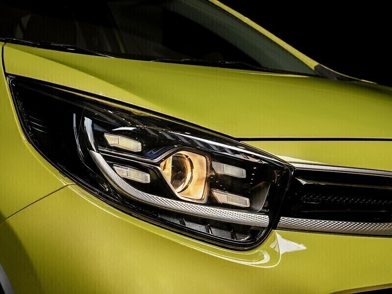 Ngay từ phần đầu xe, KIA Morning X-Line đã tạo ấn tượng với trang bị lưới tản nhiệt hình mũi hổ đặc trưng được tinh chỉnh với viền mạ crôm bao quanh kéo dài đến cụm đèn pha cũng được tái thiết kế. Dải đèn LED ban ngày gồm 4 bóng đèn bao quanh đèn chính dạng gương cầu trông thiết kế hiện đại.